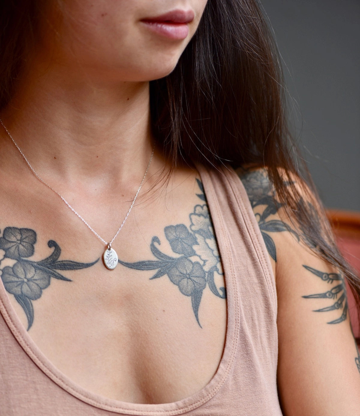 Sterling silver pendant on sterling chain, 18" total length.